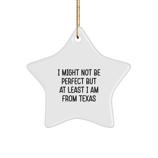 Texas Oval Ornament, 'I Might Not Be Perfect But At Least I Am From Texas', Funny Gifts from Friends, Family, or Coworkers for Texas Lovers, Unique Christmas Decorations