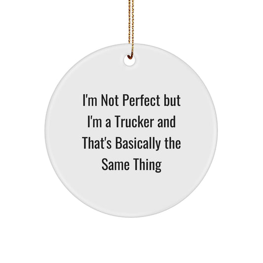 Funny Trucker Gifts from Friends for Christmas - 'I'm Not Perfect But I'm A Trucker' Circle Ornament, Trucker Unique Gifts