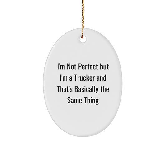 'Trucker Humor Gifts from Men to Friends, 'I'm Not Perfect But I'm A Trucker And That's Basically The Same Thing' Oval Ornament, Unique Christmas Unique Gifts