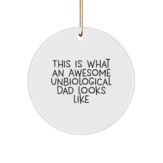 Funny Unbiological Dad Gifts, Circle Ornament with 'This Is What An Awesome Unbiological Dad Looks Like' Quote, Gifts from Friends, Family, Coworkers, Men, Women, Unique Christmas Ornament