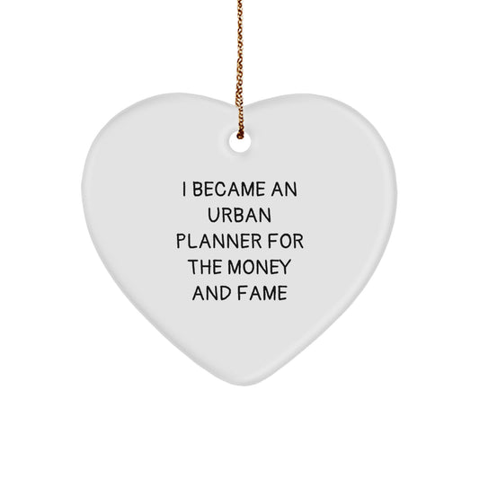 Urban Planner Gifts for Christmas - Funny Heart Ornament from 'I Became An Urban Planner For The Money And Fame' - Unique Gifts from Friends for Urban Planner Lovers