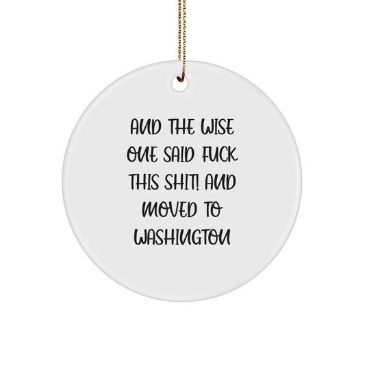 Funny Washington Gifts, 'And The Wise One Said F--k This Shit! And Moved To Washington' Circle Ornament, Perfect for Christmas, Gifts from Friends, Family and Coworkers