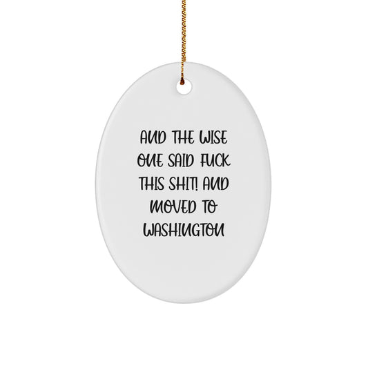 Funny Washington Gifts for Men, Women, Friends, Coworkers, Family - Oval Ornament with 'And The Wise One Said F--k This Shit! And Moved To Washington' Quote - Unique Christmas Decor