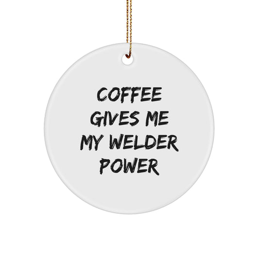 Funny Welder Gifts for Men from Friends - 'Coffee Gives Me My Welder Power' Circle Ornament, Christmas Unique Presents