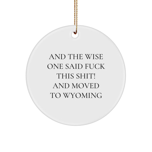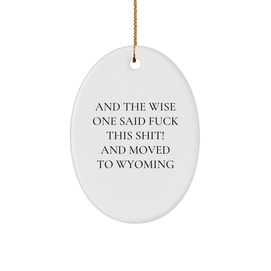 Funny Wyoming Oval Ornament Gifts for Friends - 'And The Wise One Said F--k This Shit! And Moved To Wyoming' - Perfect for Christmas