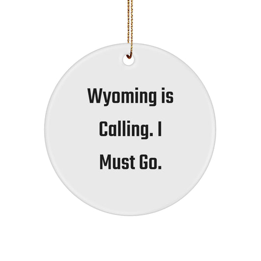 Wyoming Calling Gifts for Men - Circle Ornament with Funny Quote - White, 2.75'' Tall, 0.5 oz, Durable MDF, Vibrant Colors, Gift from Friends, Family, or Coworkers for Christmas