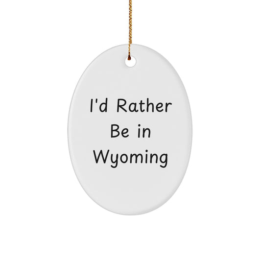 Wyoming Oval Ornament, 'I'd Rather Be In Wyoming' Quote, White, Oval Shaped, Christmas Unique Gifts for Men, Women, Friends, Family, Gifts from Wyoming, Unique Christmas Unique Gifts