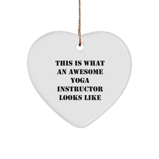 Funny Yoga Instructor Gifts from Friends for Christmas - Heart Ornament with 'This Is What An Awesome Yoga Instructor Looks Like' Quote