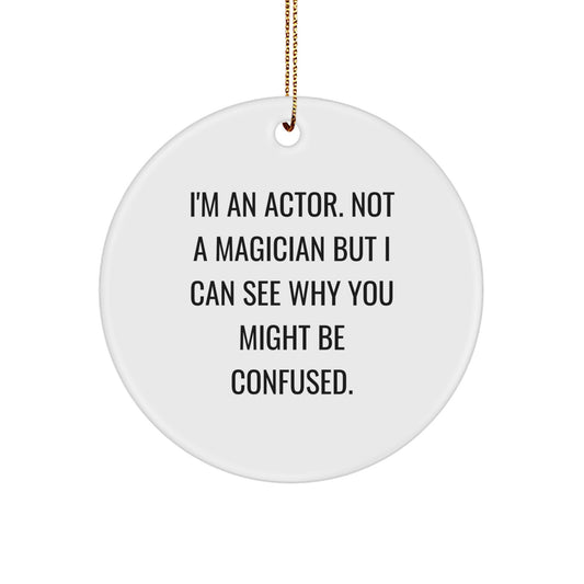 Funny Actor Gifts for Him, Circle Ornament with 'I'm An Actor. Not A Magician But I Can See Why You Might Be Confused.' Quote, Christmas Unique Gifts from Friends, Family, Coworkers