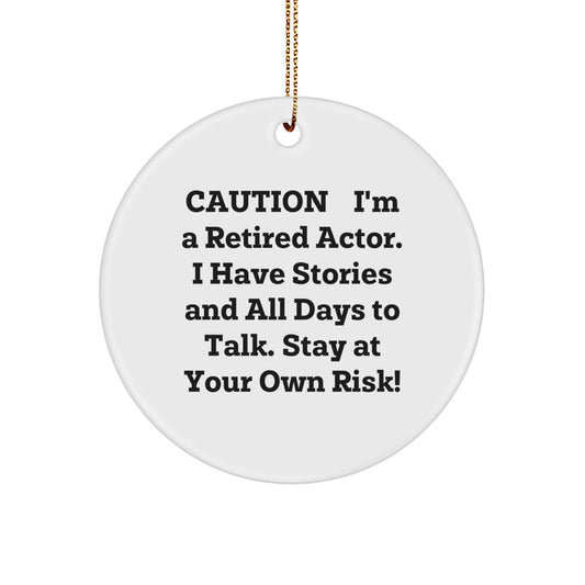 Funny Actor Gifts from Men to Friends - 'Caution: I'm A Retired Actor...' Circle Ornament for Christmas