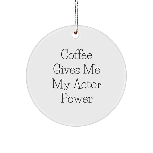 Funny Actor Gifts from Friends for Actor - Circle Ornament with 'Coffee Gives Me My Actor Power' Quote for Christmas