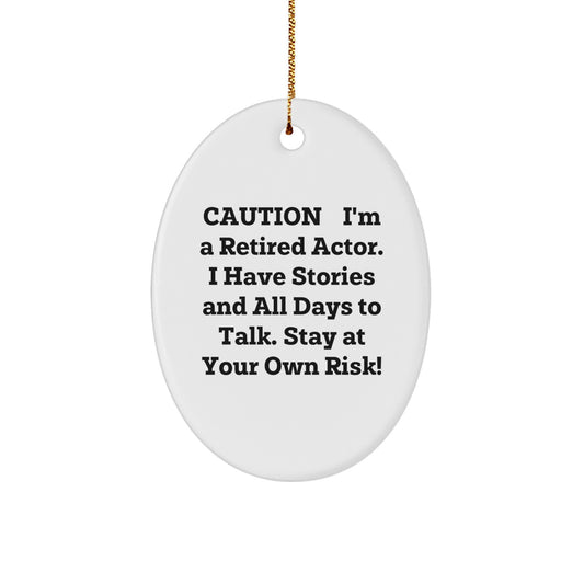 Funny Actor Gifts from Friends and Family - Caution: I'm A Retired Actor. I Have Stories And All Days To Talk. Stay At Your Own Risk! - Oval Ornament for Christmas