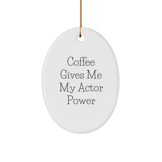 Actor's Coffee Power Oval Ornament Gifts from Friends, Family, or Coworkers, Funny Quote for Men, Women, or Anyone Who Loves Acting