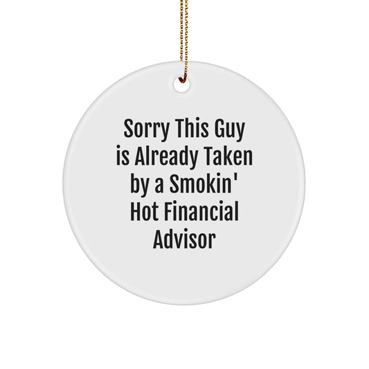 Funny Financial Advisor Gifts from Men to Friends - Sorry This Guy Is Already Taken By A Smokin' Hot Financial Advisor Circle Ornament for Christmas