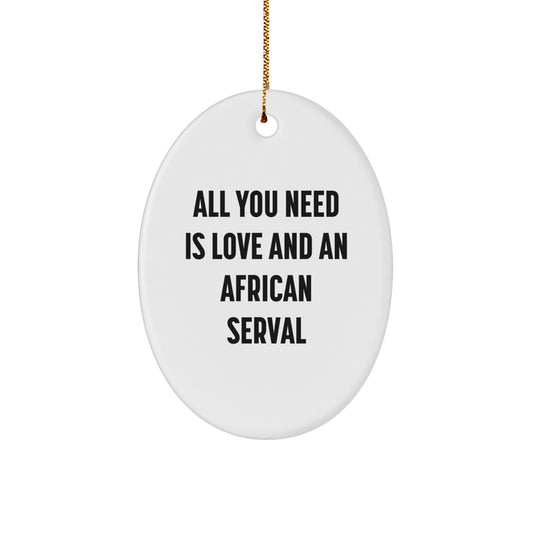 African Serval Cat Lovers Gifts - All You Need Is Love - Oval Ornament for Men, Women, Family, Friends - Christmas Unique Gifts from Mom, Dad, Grandma, Grandpa
