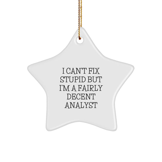 Funny Analyst Gifts from Friends or Family - I Can't Fix Stupid But I'm A Fairly Decent Analyst Star Ornament for Men or Women, Unique Christmas Unique Gifts for Coworkers, 3.25" Tall