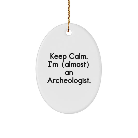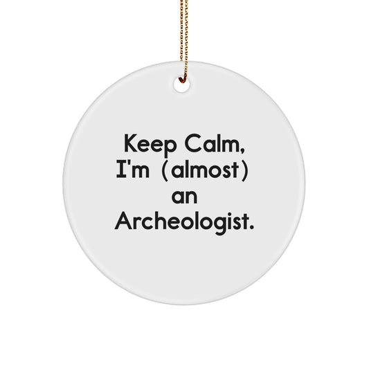 Funny Archeologist Gifts for Men, Women, Coworkers, or Family - Keep Calm, I'm (almost) An Archeologist. Christmas Unique Circle Ornament
