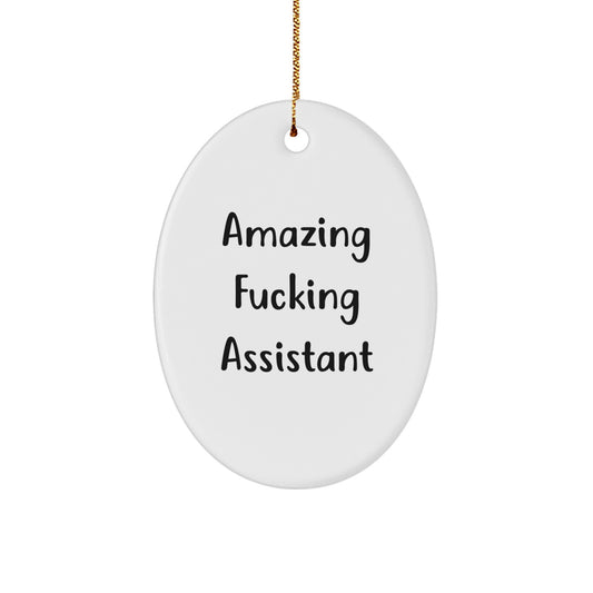 Funny Assistant Gifts for Men, Cute Oval Ornament with Inspirational Quote 'Amazing F--king Assistant', Perfect Christmas Unique Gifts from Friends to Coworkers