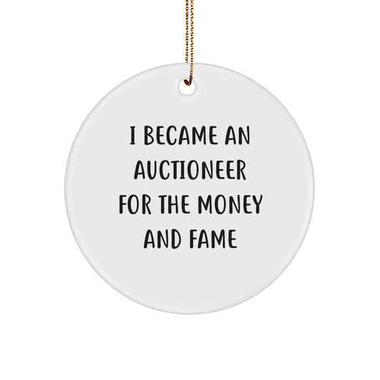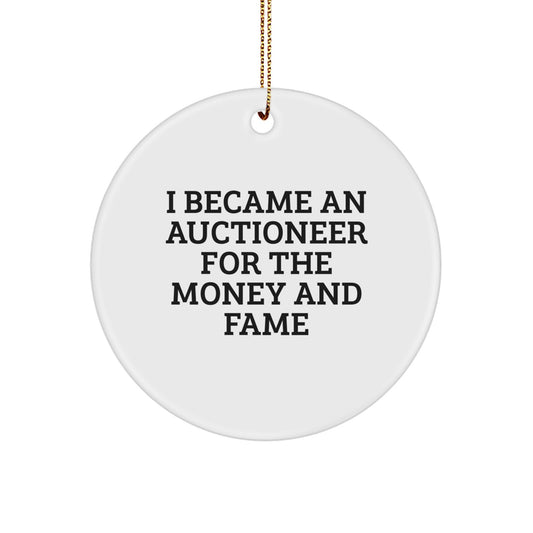 Funny Auctioneer Gifts from Men for Friends, Unique Christmas Circle Ornament for Sale, 'I Became An Auctioneer For The Money And Fame' Quote Decor