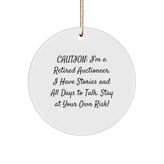 Funny Auctioneer Gifts from Men, Unique Star Ornament for Auctioneer Friends, Caution: I'm A Retired Auctioneer. I Have Stories And All Days To Talk. Stay At Your Own Risk! Christmas Unique Gifts