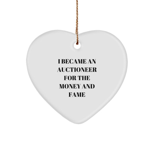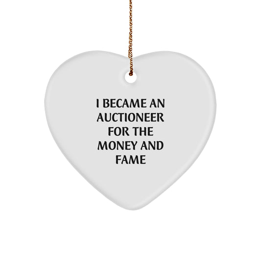 Funny Auctioneer Gifts from Friends - Heart Ornament for Auctioneer Enthusiasts, Christmas Unique Gifts for Men, Women, Coworkers - 'I Became An Auctioneer For The Money And Fame'