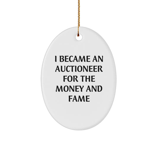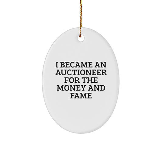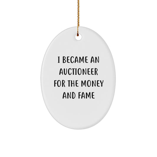 Funny Auctioneer Gifts from Men, Unique Oval Ornament for Auctioneer, Christmas Unique Gifts for Friends, I Became An Auctioneer For The Money And Fame
