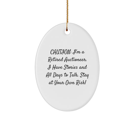 Funny Auctioneer Gifts for Men, Oval Ornament with 'Caution: I'm A Retired Auctioneer...'