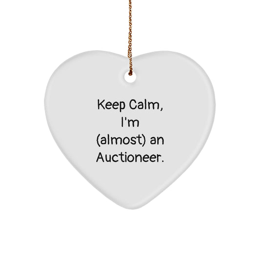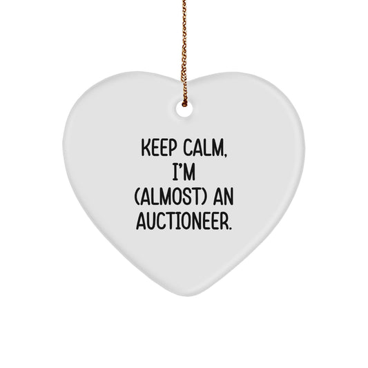Funny Heart Ornament Gift for Auctioneer Friends - Keep Calm I'm (almost) An Auctioneer Gifts from Men for Christmas Unique Presents