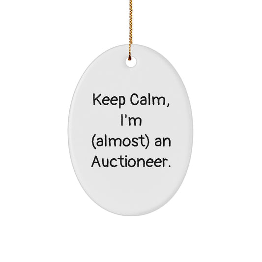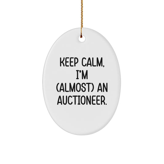 Funny Auctioneer Gifts for Friends - Oval Ornament with 'Keep Calm, I'm almost An Auctioneer' - White Oval Shape Christmas Unique Gifts