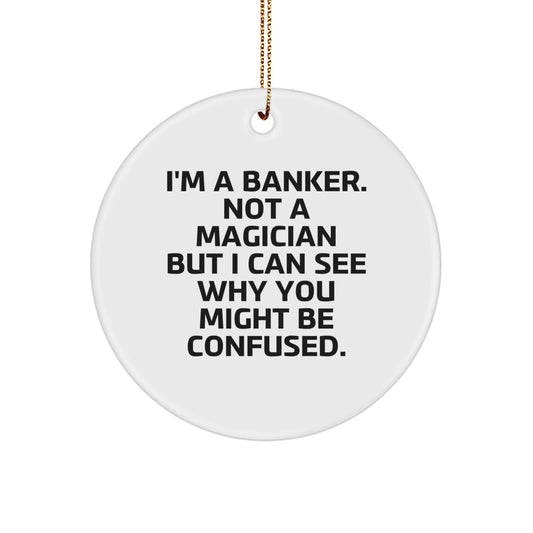 Banker Gifts for Men - Funny Circle Ornament, 'I'm A Banker. Not A Magician...' - Christmas Unique Gifts from Friends