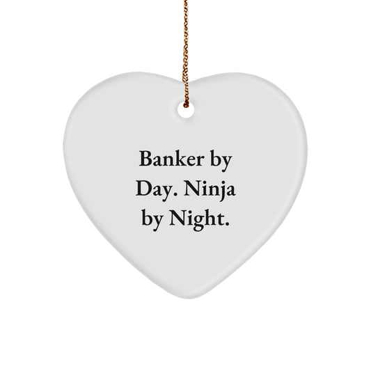 Banker By Day, Ninja By Night - Heart Ornament, Christmas Unique Gifts for Men and Women, Gifts from Friends for Coworkers, Family