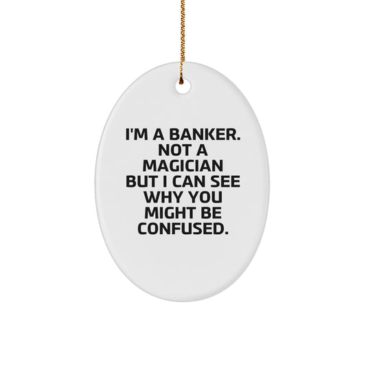 Banker Gifts, Funny Oval Ornament, 'I'm A Banker. Not A Magician But I Can See Why You Might Be Confused.' Gifts from Men to Bankers for Christmas