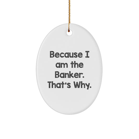 Funny Banker Gifts for Him, Oval Ornament Because I Am The Banker That's Why, Christmas Unique Gifts from Men