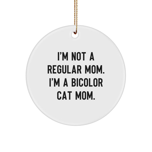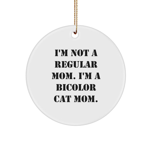 Funny Bicolor Cat Gifts for Women, I'm Not A Regular Mom. I'm A Bicolor Cat Mom. Christmas Circle Ornament from Family, Gifts for Bicolor Cat Lovers, Circle Shaped Decor