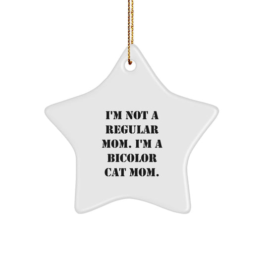 Funny Bicolor Cat Mom Star Ornament, Gifts from Family for Christmas, 'I'm Not A Regular Mom. I'm A Bicolor Cat Mom.'