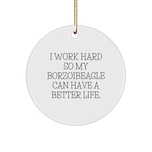 Borzoi Dog Gifts from Family, I Work Hard So My Borzoibeagle Can Have A Better Life. Funny Christmas Circle Ornament for Friends, Coworkers, or Women
