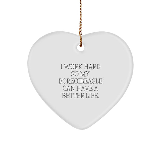 Borzoi Dog Lover Gifts, I Work Hard So My Borzoibeagle Can Have A Better Life., Heart Ornament, Christmas Unique Gifts from Family to Friends