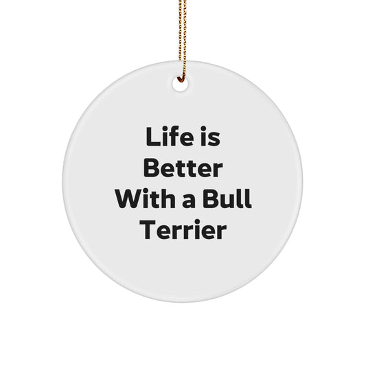 Funny Bull Terrier Dog Gifts from Family for Christmas - 'Life Is Better With A Bull Terrier' Circle Ornament, Unique Presents for Men, Women, Friends