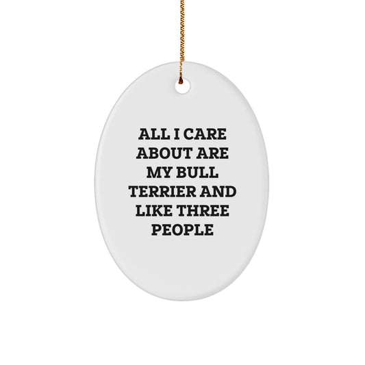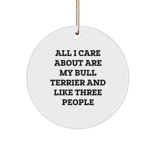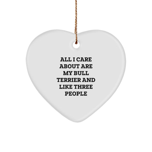 Bull Terrier Dog Lover Gifts from Friends, Family, or Coworkers - 'All I Care About Are My Bull Terrier And Like Three People' Heart Ornament for Christmas Unique Gifts