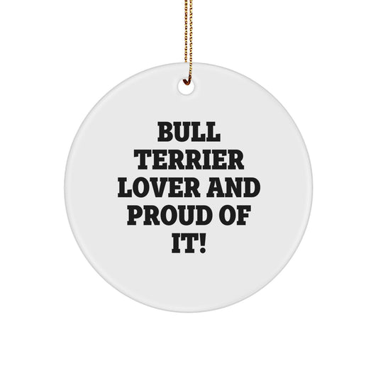 Bull Terrier Dog Lovers Gifts from Family - 'Bull Terrier Lover And Proud Of It!' Circle Ornament for Christmas