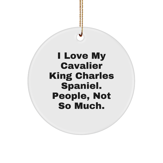 Cavalier King Charles Spaniel Dog Lovers Funny Gifts from Friends for Christmas Circle Ornament, 'I Love My Cavalier King Charles Spaniel. People, Not So Much.'