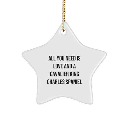 Cavalier King Charles Spaniel Dog Star Ornament Gifts from Family, 'All You Need Is Love And A Cavalier King Charles Spaniel' Christmas Unique Gifts for Cavalier King Charles Spaniel Dog Lovers