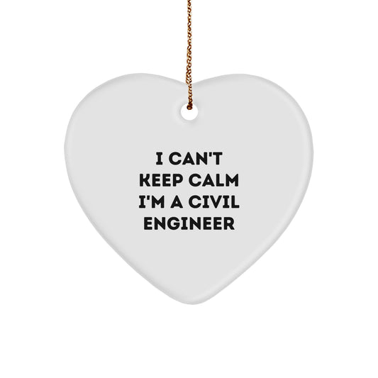 Funny Civil Engineer Gifts for Him, 'I Can't Keep Calm I'm A Civil Engineer' Heart Ornament, Christmas Unique Presents from Friends, Family, or Coworkers