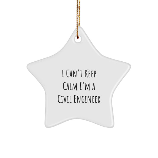 Civil Engineer Gifts from Friends, Unique Christmas Star Ornament, 'I Can't Keep Calm I'm A Civil Engineer' Funny Quote for Men, Women, Coworkers, Family