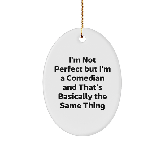 Funny Comedian Gifts from Friends, Comedian Circle Ornament for Christmas, 'I'm Not Perfect But I'm A Comedian And That's Basically The Same Thing' Quote, White Color, 2.75″ Tall