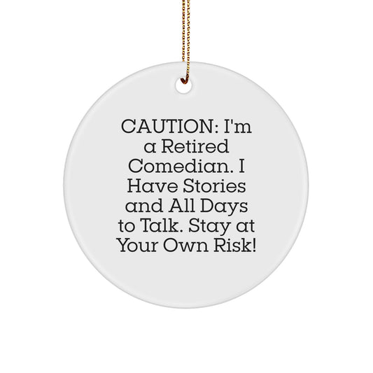 Comedian Christmas Unique Gifts from Friends and Family - Cute Circle Ornament for Comedian Lovers - Funny Quote 'Stay At Your Own Risk!' - White Circle Shaped Decorations