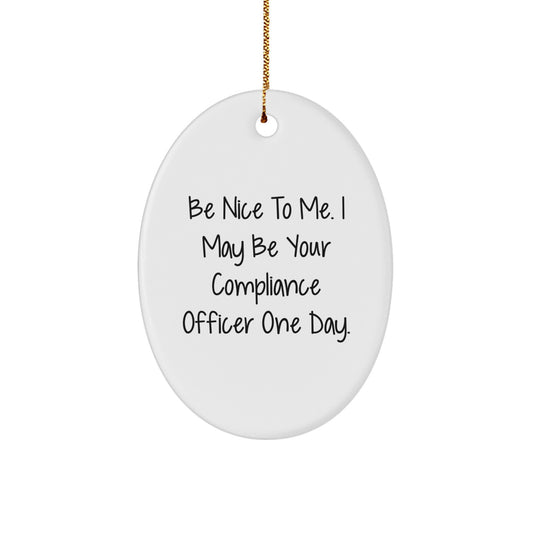 Compliance Officer Gifts, Be Nice To Me. I May Be Your Compliance Officer One Day. Oval Ornament, Funny Christmas Unique Gift for Men from Friends