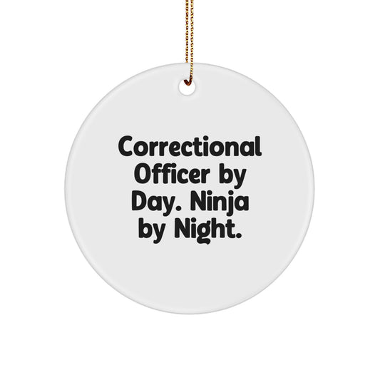 Correctional Officer Gifts, Circle Ornament: 'Correctional Officer By Day. Ninja By Night.', Funny Quote, White, Christmas