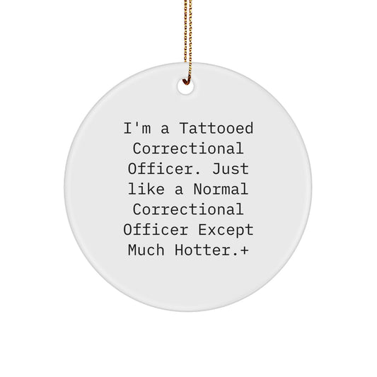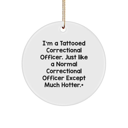 Funny Correctional Officer Gifts from Friends - I'm A Tattooed Correctional Officer Except Much Hotter.+, Circle Ornament for Christmas Unique Gifts