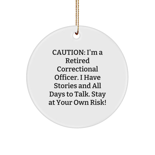 Funny Correctional Officer Gifts, 'Caution: I'm A Retired Correctional Officer...' Circle Ornament for Men, Women, or Friends, Christmas Unique Gifts from Family, Coworkers